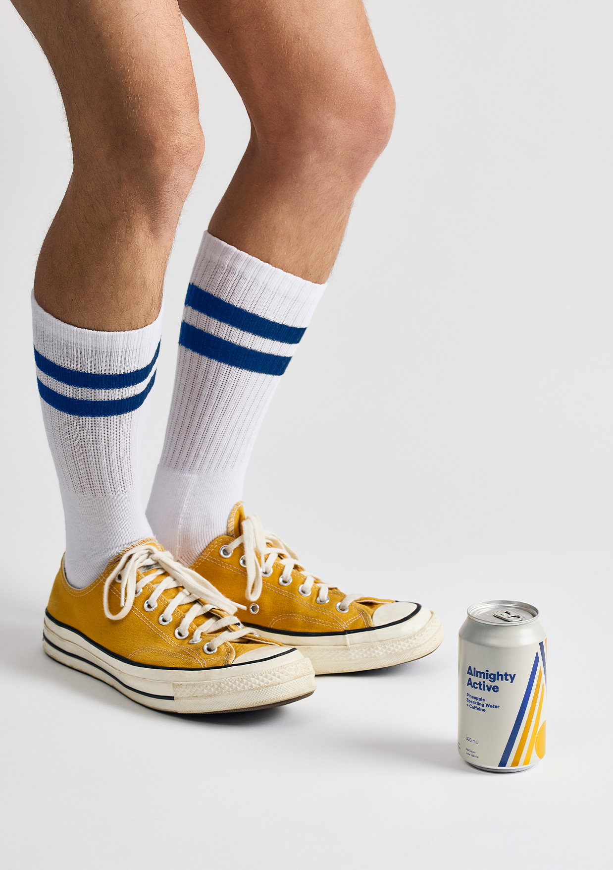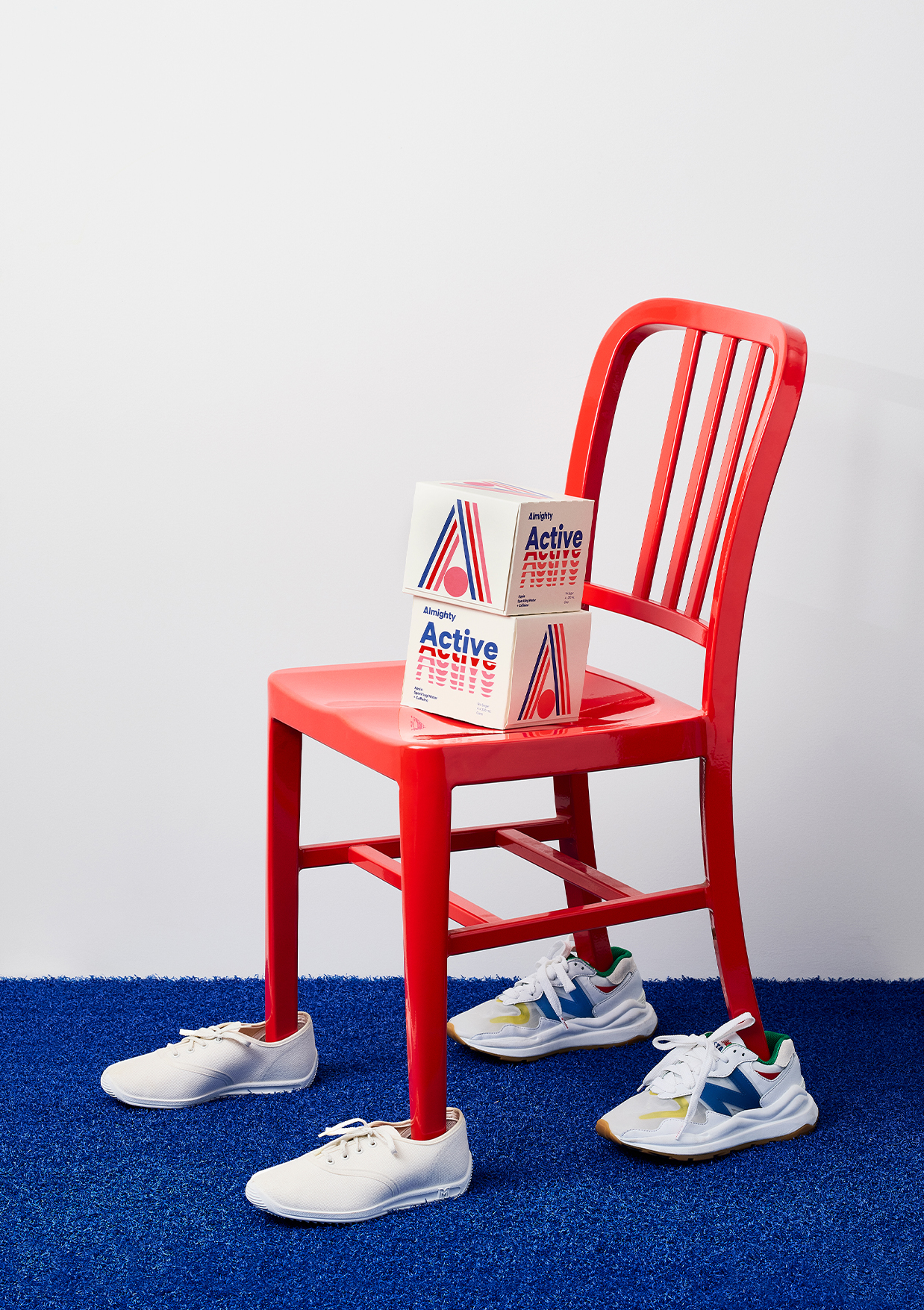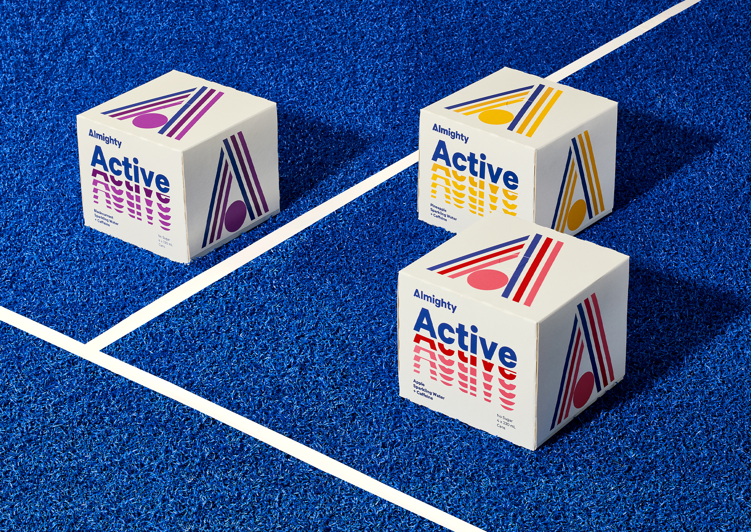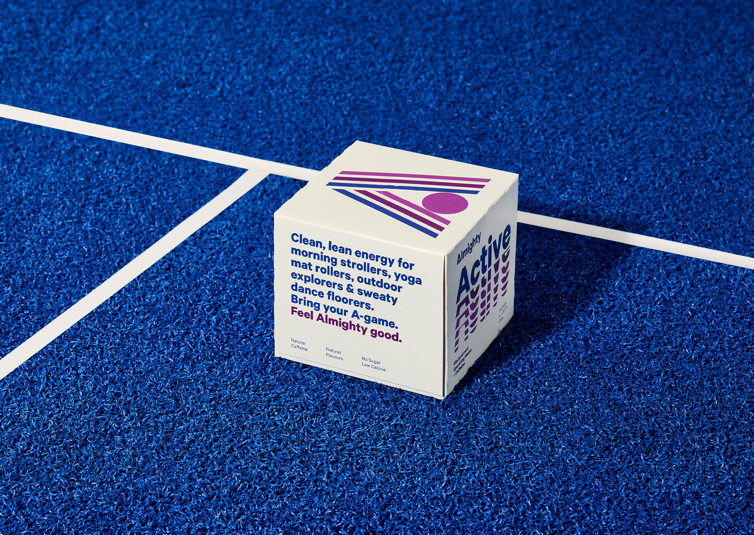 We looked to the days when sports were more sports, and less dollars and business. We landed in the mid 1970s, when athletic fashion was at its peak with crew socks and short shorts abound. Inspired by vintage Olympic uniforms, merchandise, and logos, we found the perfect aesthetic to illustrate this fresh new active offering. Introducing racing stripes to the existing Almighty logo created the perfect pack architecture framework illustrating benefit and more functional aspects such as flavour, and creating a simple but clear range navigation tool. This new ‘A’ treatment has opened the door for future range expansion that feels unique, adapts to categories but still looks distinctly Almighty.