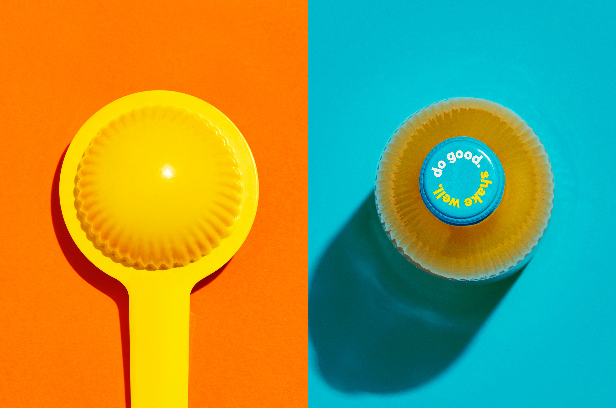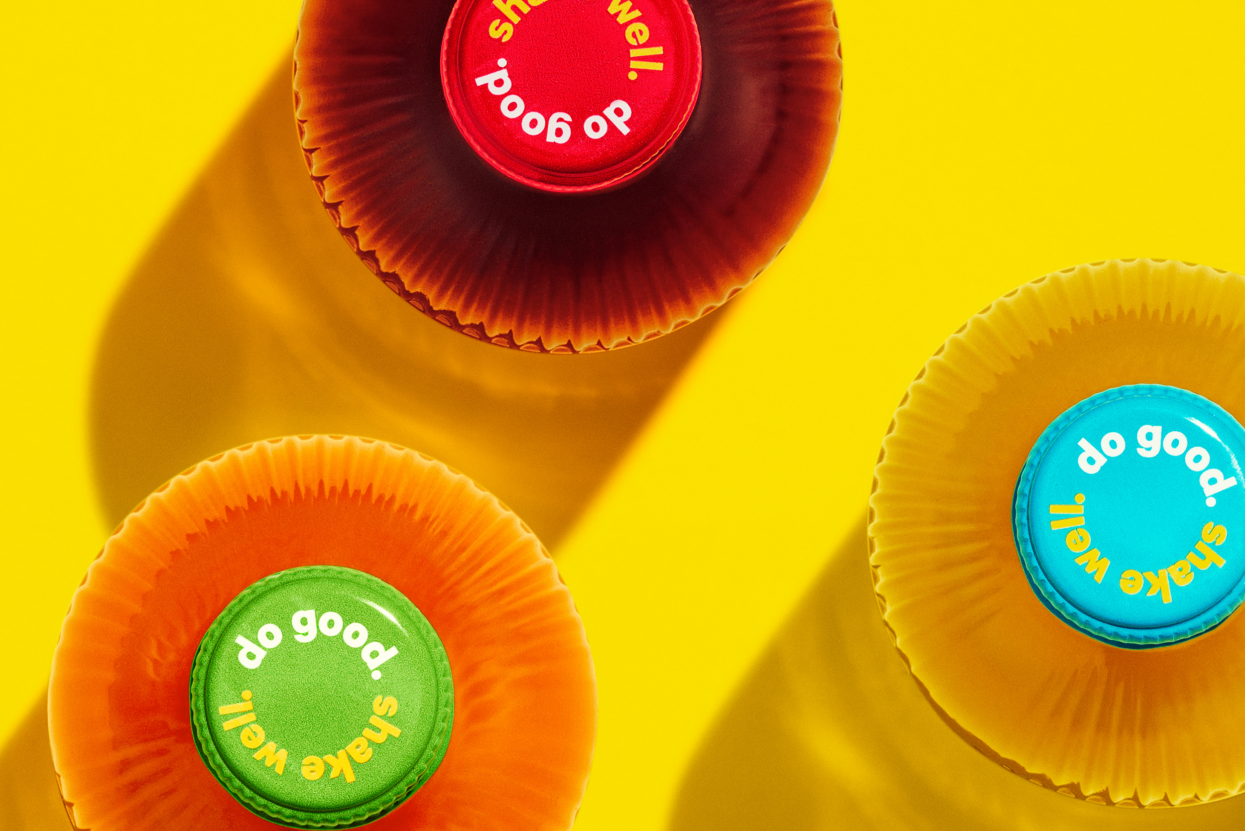 The bottle references the ridges of an old-school juicer, connecting the product to its down-to-earth origins and giving the brand a distinctive form on shelf.