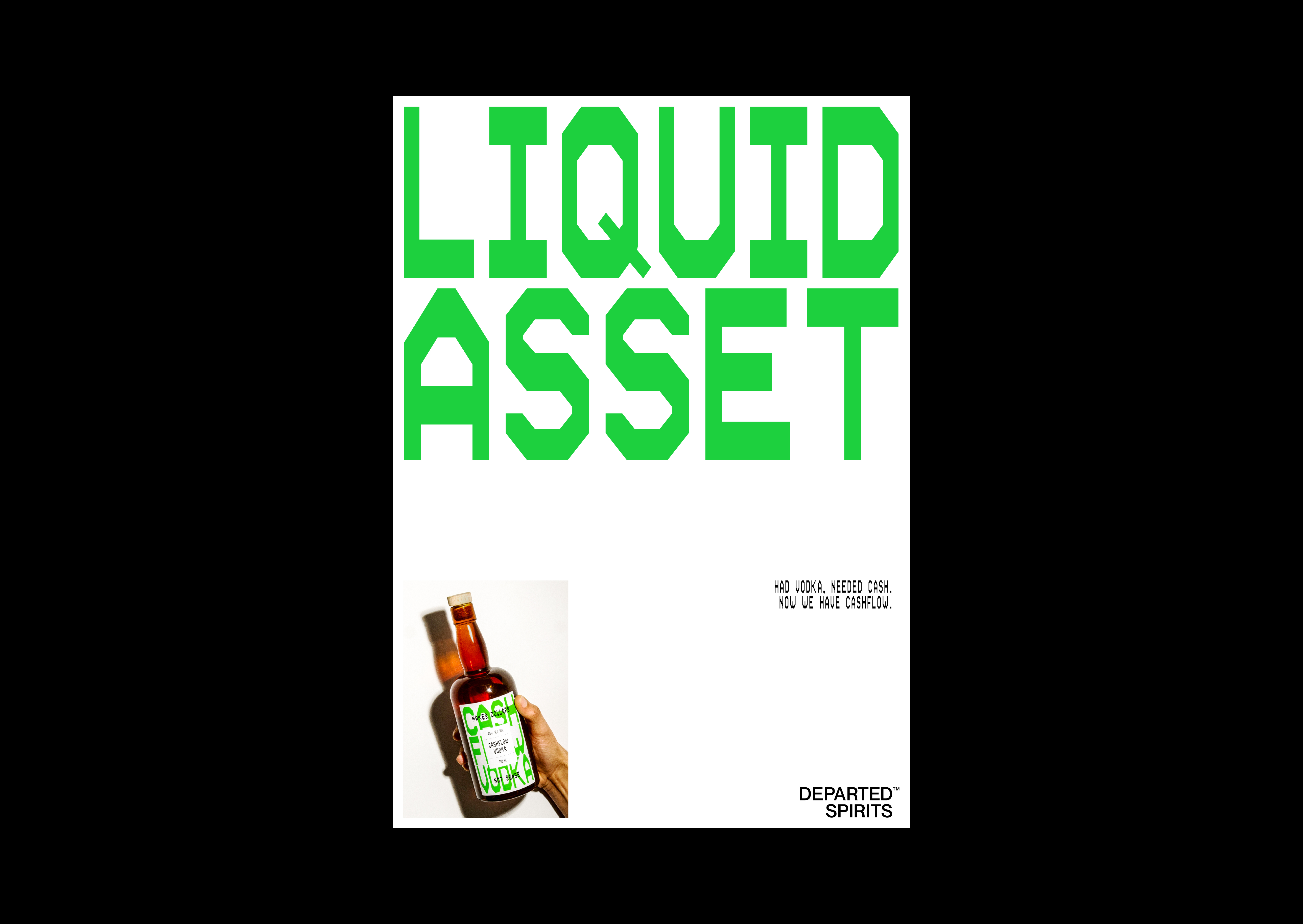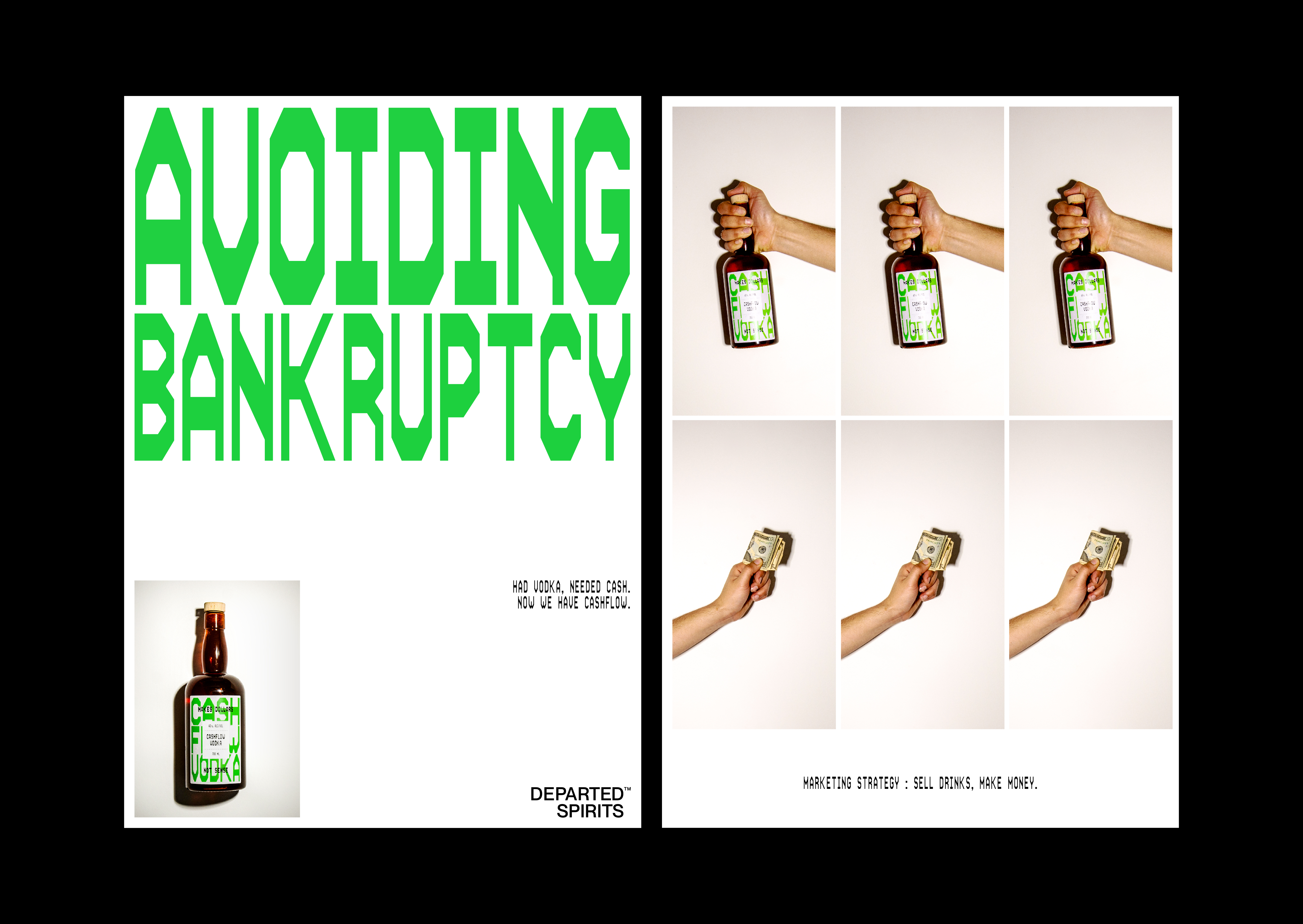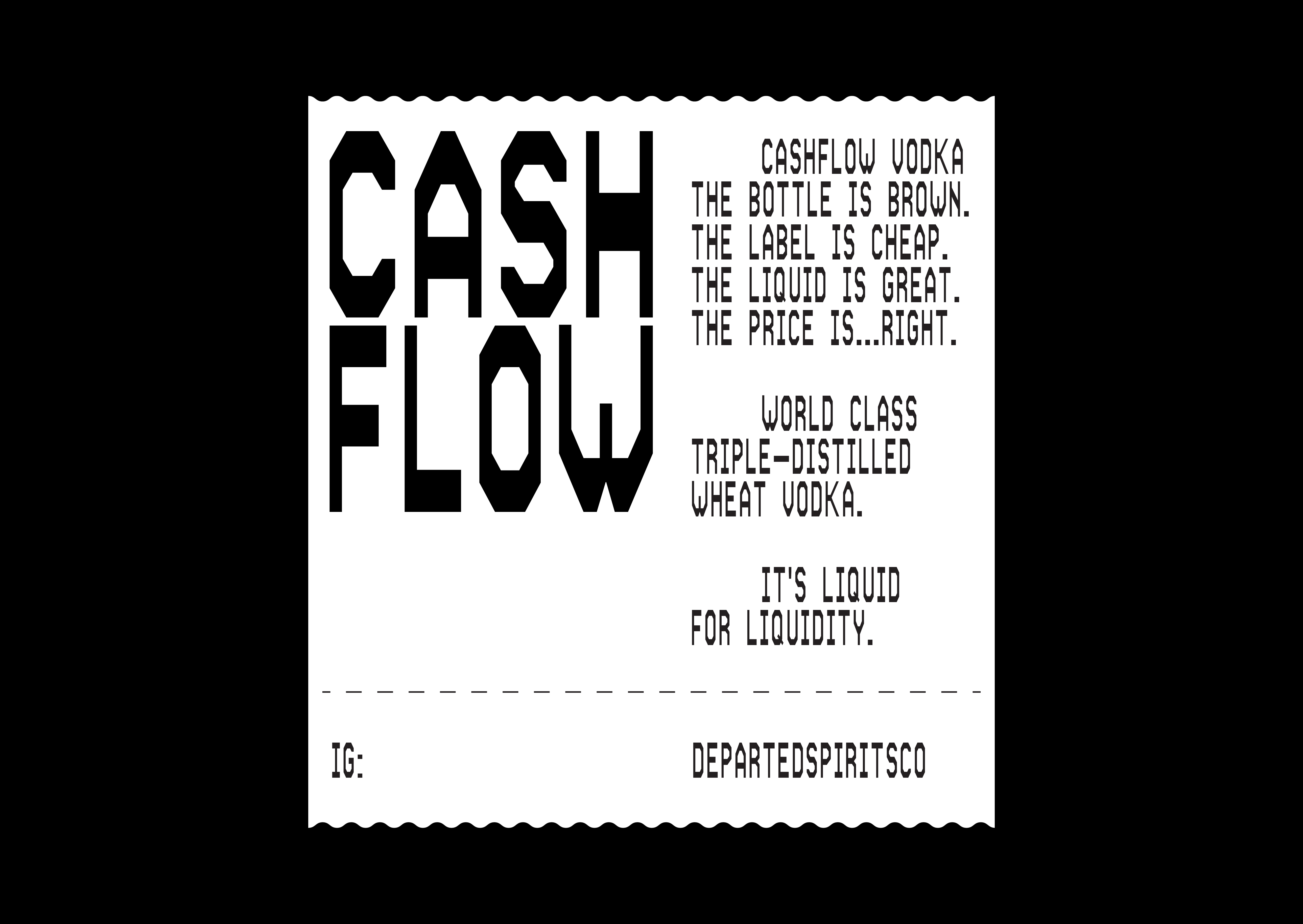 Departed Spirits had too much high-quality vodka and not enough hype. Let’s face it, mezcal was having a moment and vodka wasn’t invited. Sales were slowing, a recession was looming, and two years into building a challenger brand, the budget was cooked but the ambition wasn’t. So, we did what any self-aware, semi-broke brand would do—we got brutally honest. Cashflow Vodka was born from lean times and a refusal to fake it, turning financial stress into design opportunity.