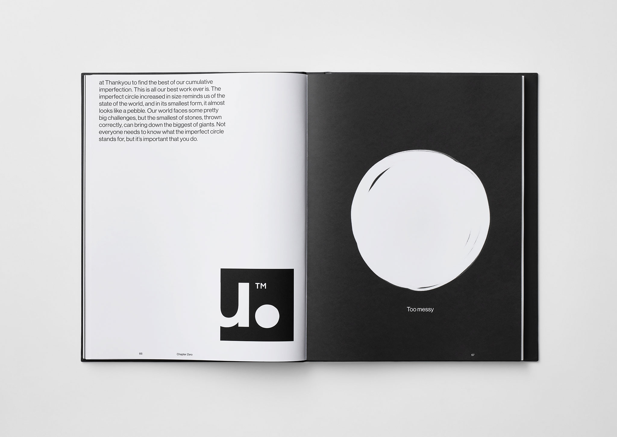 The Thankyou brand embodies a narrative reflected even in its brand identity, "The Imperfect Circle." This mark challenges the notion of perfection, encapsulating Thankyou's essence and commitment to excellence despite human limitations. The circle's evolving size signifies global challenges, while its smallest form resembles a pebble—potent against giants.