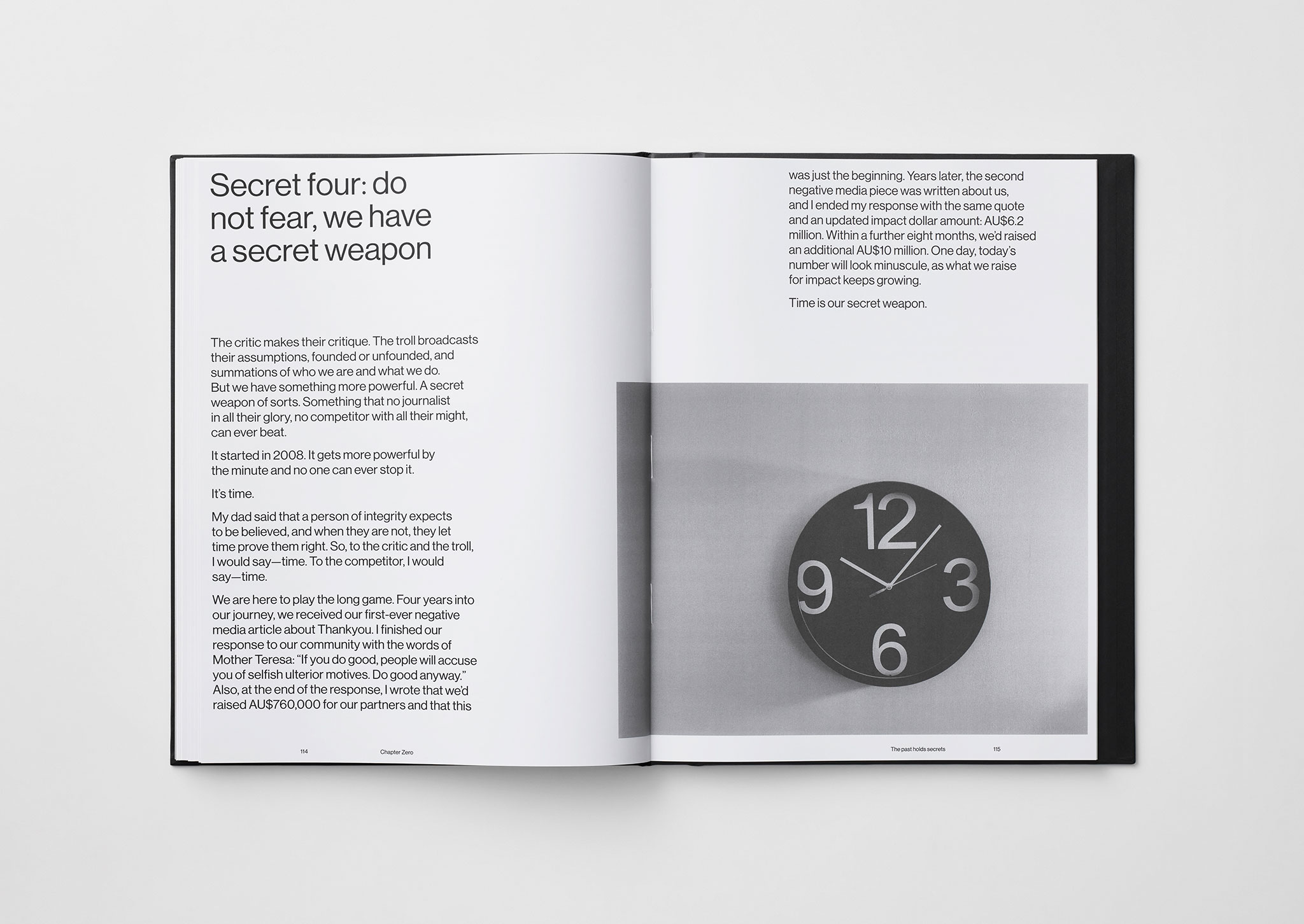 While the natural step after Chapter One was to launch Chapter Two and beyond, Thankyou realised that to go forward they had to first go backwards, in order to make sure the foundation was strong enough for what would be built in years to come. An arrow must go backwards before it’s propelled forward. A building is first built down, then it can go up. Chapter Zero documents the secrets they discovered from their past, and the ideas that will ultimately deliver the future. Like a compass is to the pioneer, Chapter Zero is to those who are co-creating, co-imagining, co-pushing the limits of this idea with infinite potential of Thankyou.