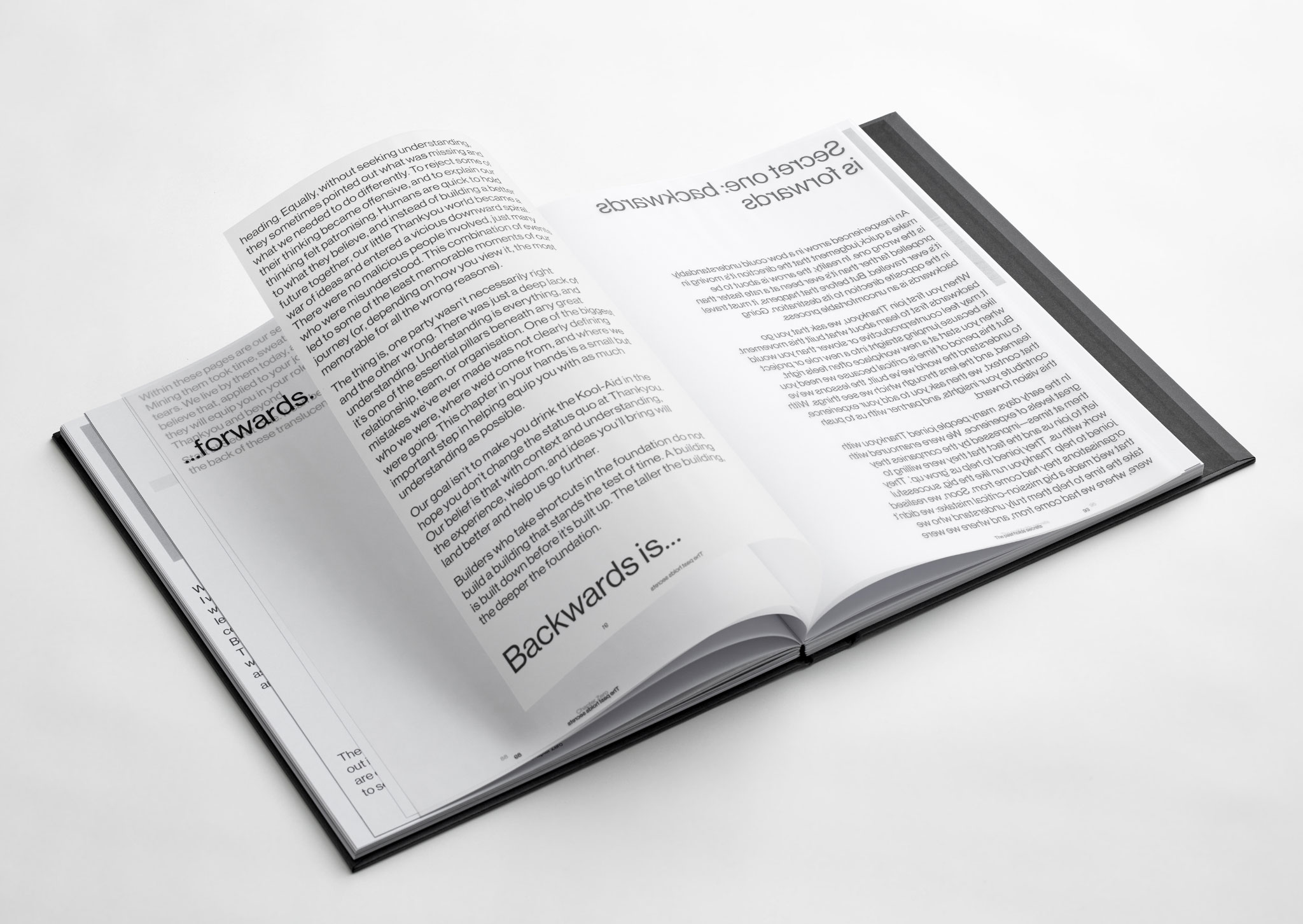 Chapter Zero was designed to be timeless and understated, bringing ideas to the forefront. We designed it so that if someone was to pull it from the bookshelf in 10 years’ time it would still be as relevant as the day it was created. There are 200 handcrafted books, each taking 2 hours and 45 minutes to physically construct. This book demands attention.