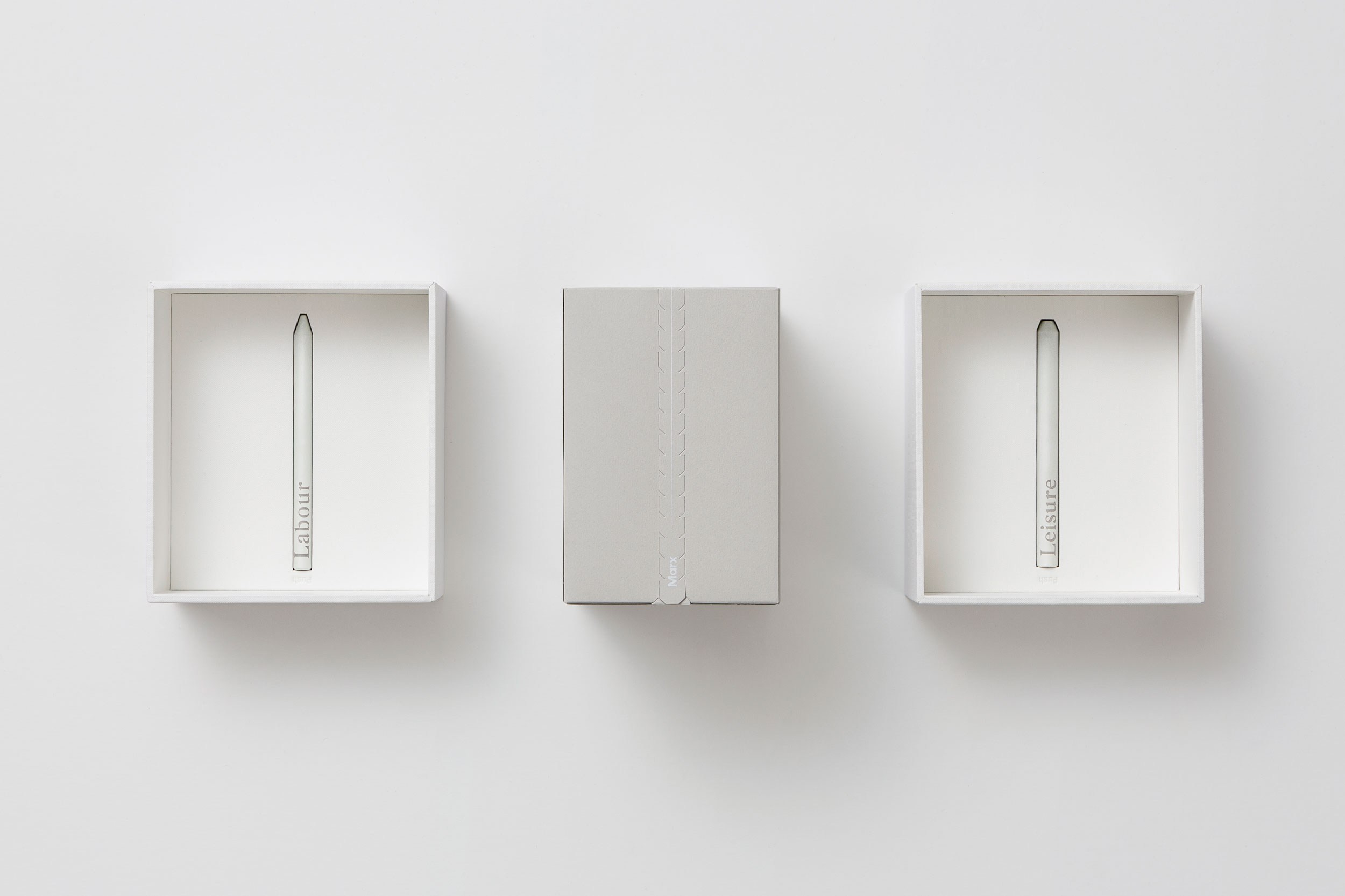 To complete the theme, Leisure was represented by a labelled pencil, Labour a pen. We enjoyed the way a playful yet considered packaging product could get across a high-concept message and showcase innovative techniques in the process.