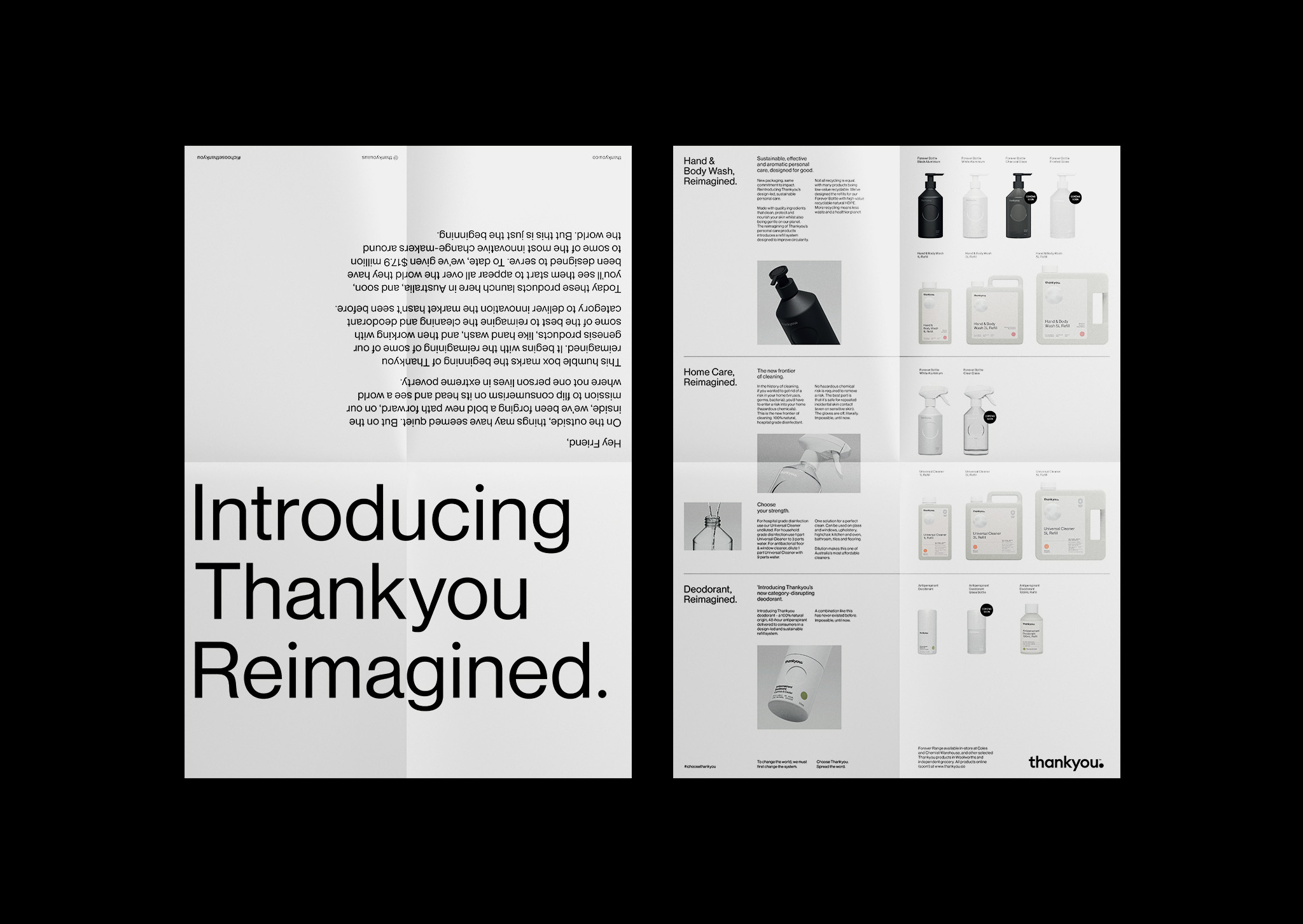 Australian-based Thankyou is a design-led social enterprise with the purpose of reimagining consumerism and redirecting trillions of dollars of profit from consumer spending toward eradicating poverty. A revolution.