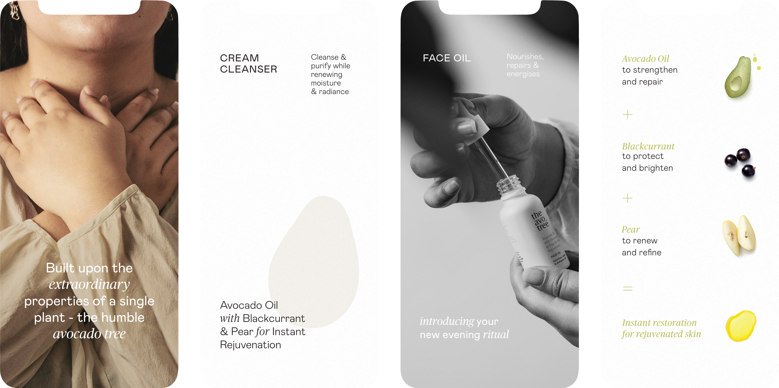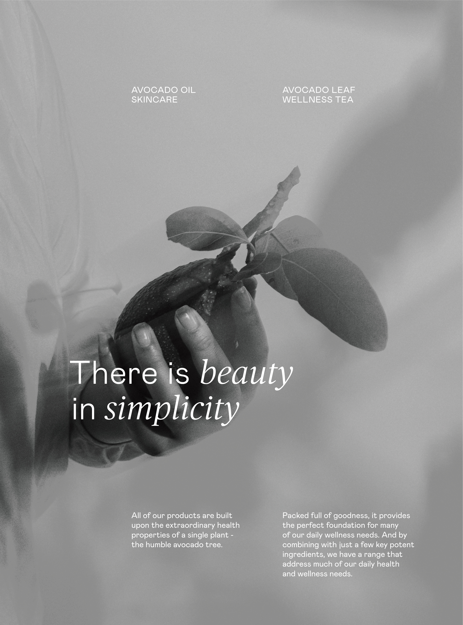 We drew inspiration from the simple, holistic approach to their products which are in essence a homage to the humble avocado tree. Each product was broken down for customers into a simple formula: Avocado (Leaf or Oil) + X + Y = Good for that.