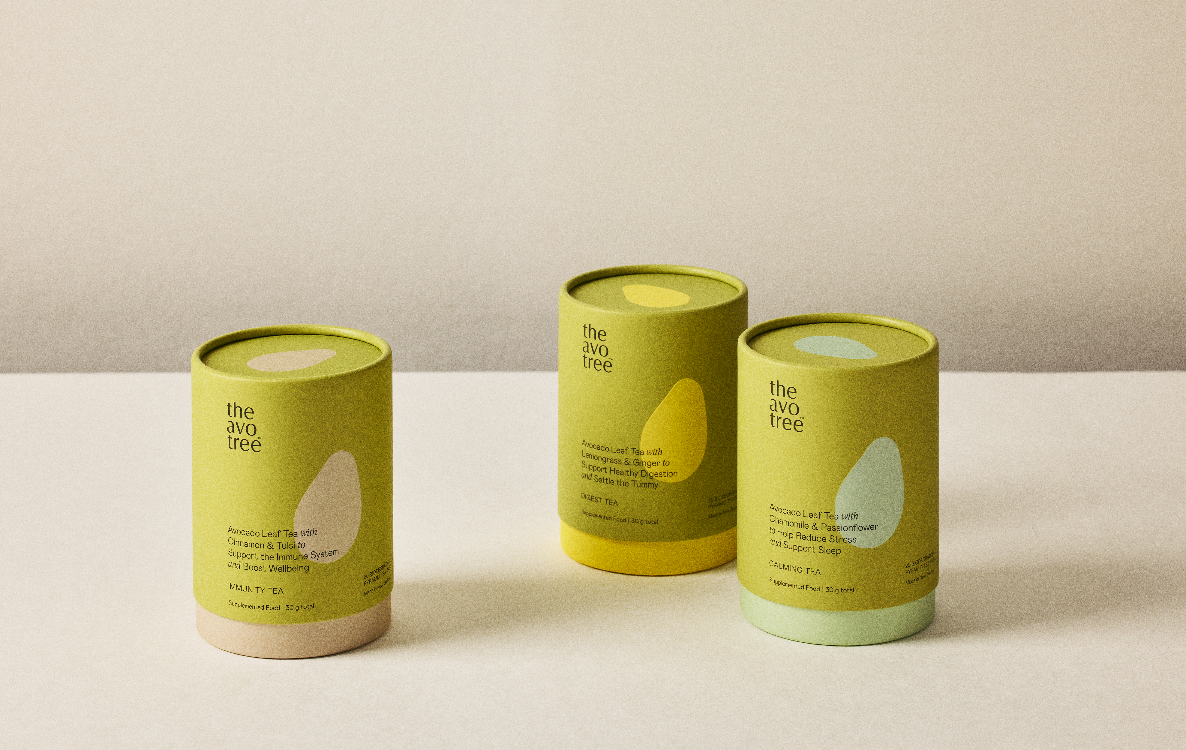 The Avo Tree tea range has three blends built from the mineral and antioxidant rich avocado leaf as the base ingredient, paired with other natural ingredients to actively aid digestion, soothe, or boost immunity.