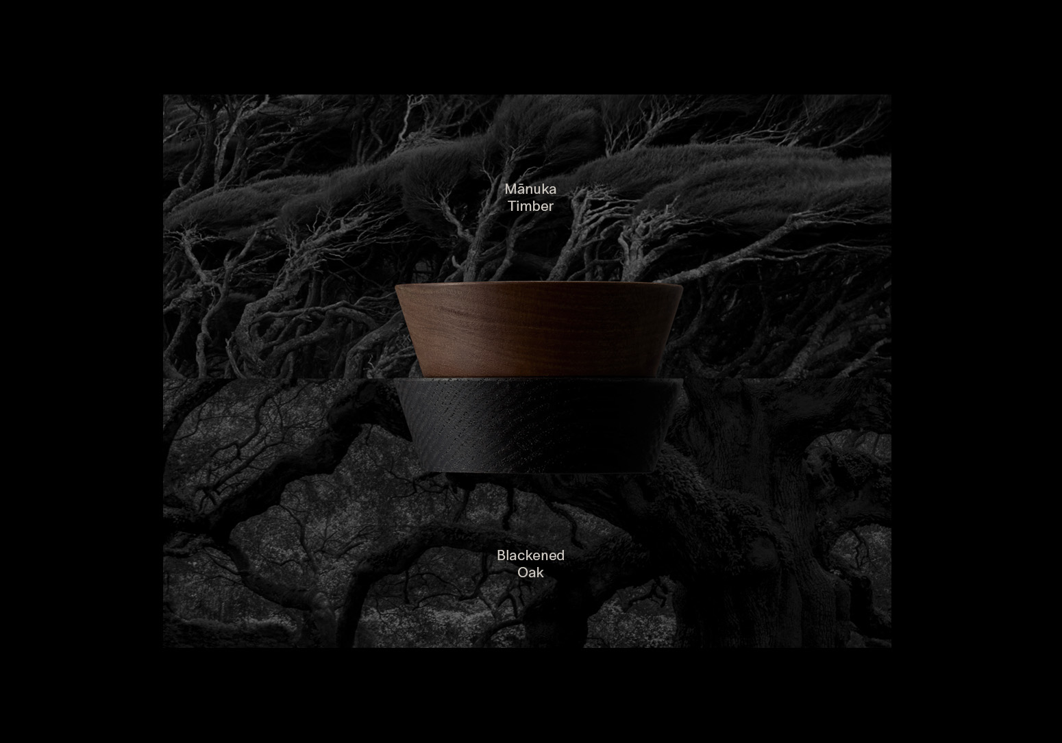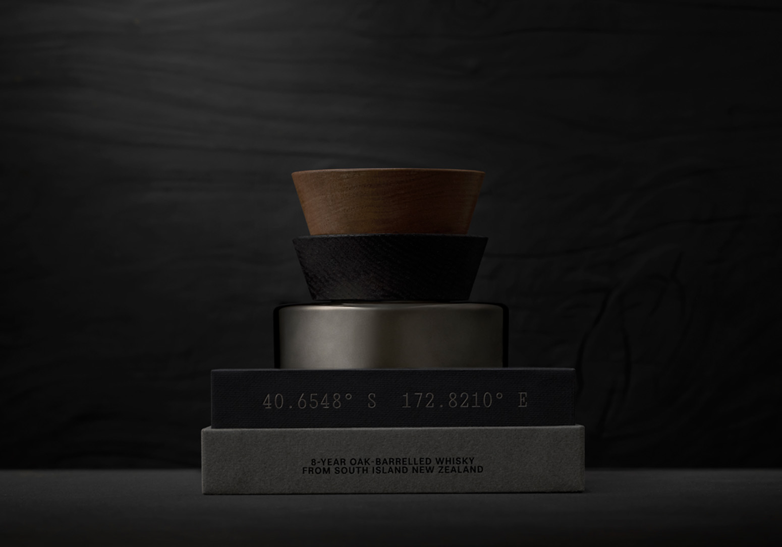 Handcrafted from blackened oak and Mānuka timber, representing the whisky and honey origins, with the arrowed shape pointing south, echoing the brand's name and story.
