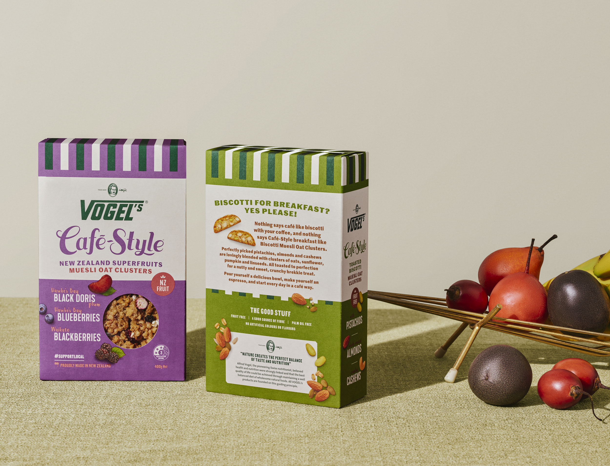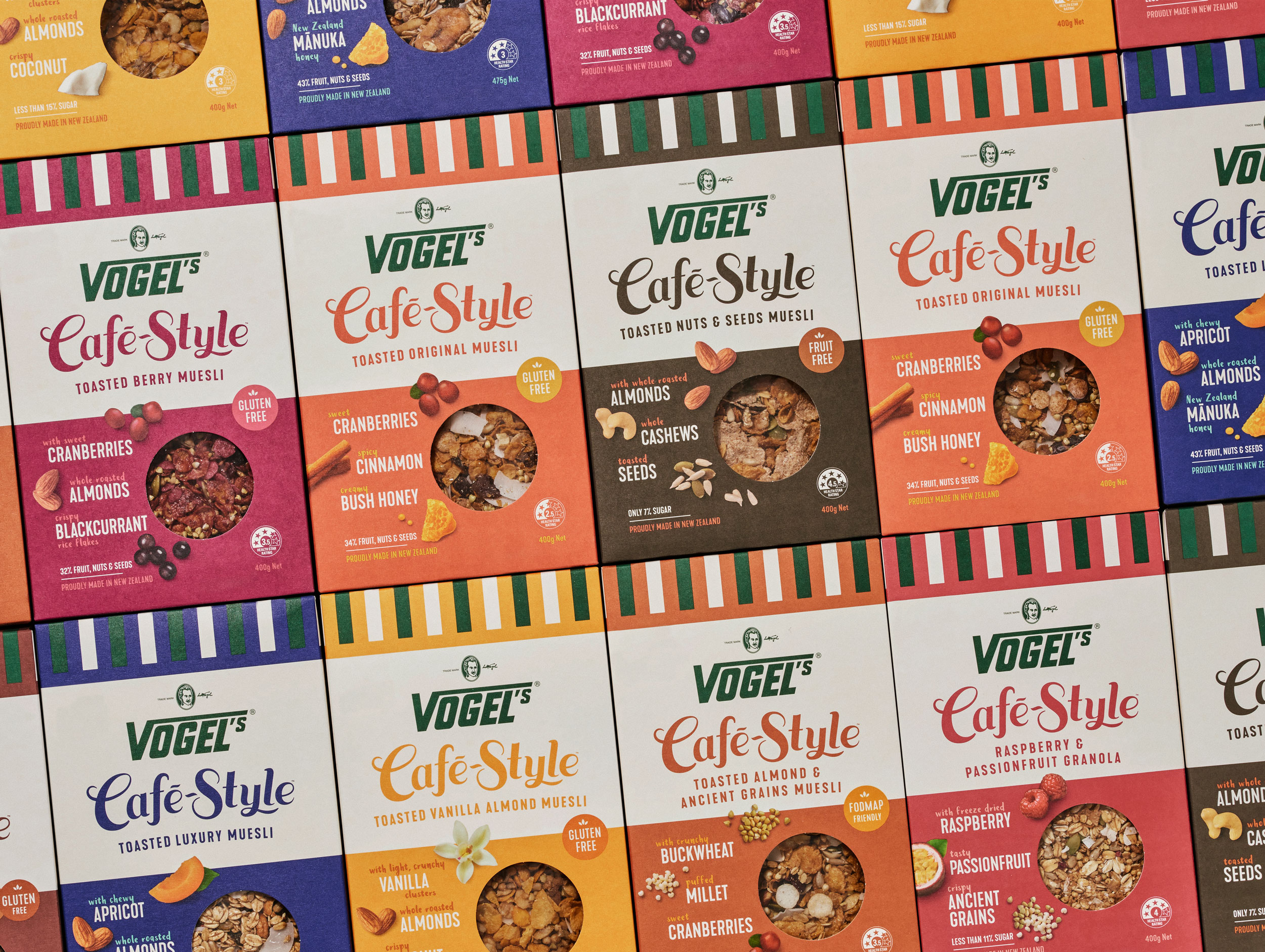 Vogel’s bread is a top contender for New Zealand’s most iconic breakfast staple, regarded as a true cultural icon. With a rich heritage and high brand awareness to draw on, our approach to a design refresh for Vogel’s Cafe cereal looked to the past to help move the brand forward.